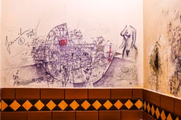 Ten den jsem tam vešla s foťákem. Bylo zrovna po poledni, to však nic nebránilo tomu, aby už štamgasti trůnili u svého stolu. Moje zvídavost v kombinaci se zrcadlovkou v ruce nešla přehlédnout a všechny páry očí byly rázem na mě. A tak jsme se dali se štamgasty, tedy s celou pivnicí, do rozhovoru. V doprovodu mě pánové zavedli i na svůj pisoár, který jsem podle nich nutně musela vidět a zdokumentovat. BTW uměleckou čur-rampu dělal štamgast, Jaromír Gargulák, autor Hrachoviny na Mendláku.