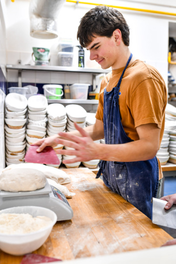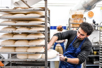 Dobrých pekáren má Brno už víc, ale tahle je přece jen jiná. Z části i díky příběhu Samuela. Původně vystudovaný zdravotní bratr vyrazil za poznáním do Dublinu, kde dělal baby sitting i myče nádobí. Z toho se vypracoval na číšníka, který si po letech udělal i someliérské zkoušky. A právě tady, v michelinských restaurací se zamiloval do kvalitního jídla. Pak návrat do Brna, covid a hledání, jak pokračovat ve městě, kde michelinské restaurace nejsou. Začínal zase z nuly.
