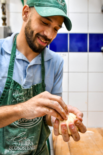 V Krpoli jsme u něj ochutnávali v rámci naší procházky po této čtvrti a samozřejmě mě předtím nechal svou pekárnu i očichat. I když tu byl cvrkot, panovala pohodová atmosféra a k tomu hrála dobrá hudba. Byla jsem tak nadšená, že jsem si uvědomila až v šalině, že jsem Samiho, který zrovna úřadoval u počítače, ani nevyfotila.
