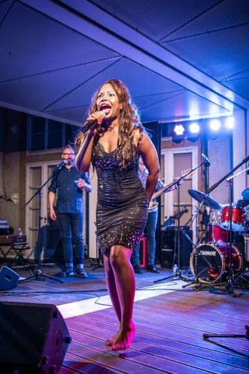 Poté, co si vystojím čtvrthodinovou frontu na pivo, konečně můžu usednout na obrubník, zahnat žízeň a zaposlouchat se do buskerského tria akordeonistů. Pak pokračuju na nádvoří Staré radnice, kde se o pohodu postaral SwingHouse Orchestra. Sedí se v plážových lehátkách, na schodech, kašně i v křesílkách a před pódiem se tančí. Malí i velcí. Hubení i korpulentní. Klidně holka s holkou. Všichni si to užívají, když se z pódia ozve „Následující skladba by se dala přeložit jako Jebni to tam!“ Zůstala bych tu do konce večera, ale nechci si nechat ujít americkou bluesovou divu Juwanu Jenkins, která koncertuje na nádvoří Místodržitelského paláce. Energická žena s vlasy po pás si zuje lodičky už při první písničce, kdy roztleská publikum. Dojetí z prvního možného koncertu po covidové nucené pauze nedokázala skrýt a prožívám to s ní.