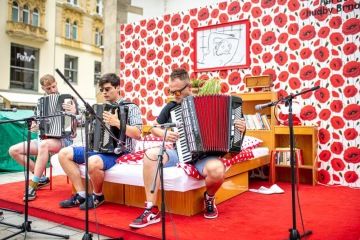Na Jakubáku zastihnu buskera Samuela Rychtára, který mě odzbrojí, jak bez zábran a studu komunikuje s obecenstvem. Z vedra ulice prchám do chladu kostela na Jezuitské za rohem, abych se nechala unést hudbou vyluzovanou čerstvým absolventem konzervatoře Filipem na slavné švýcarské varhany. Odtud to beru přes Orlí, kde celou ulici roztleská stepovací ansámbl pod vedením devatenáctiletého mistra světa Tobiáše Košira.