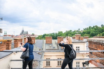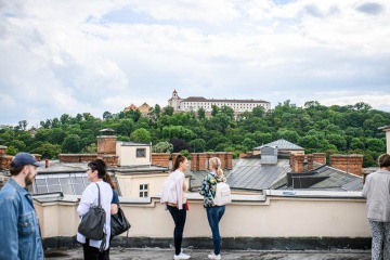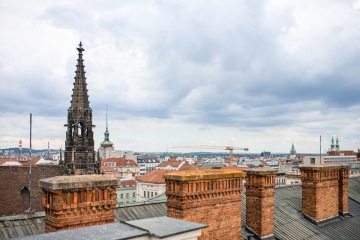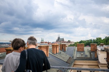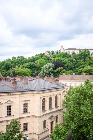 Kolem této budovy na Joštove chodím často a konečně mám jasno v tom, proč má tak neobvyklý lichoběžníkový tvar. Proč tam mají v knihovně zabudovaný jeřáb. Proč je sváteční sál v tělocvičně. V jakém patře se skrývá Rádio R i jak parádní výhled je ze střechy. Nejen na Špilas. Nejen na Jaselskou. Nejen na „červený kostel“.