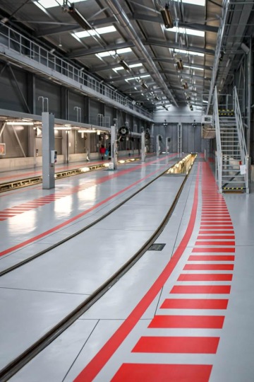 Dozvídám se, že jednou za 14 dní probíhá kontrola pantografů, tedy výsuvných sběračů proudu na střeše vozu, které se dotýkají trolejí. I když u tramvajových kol nehrozí ojetí vzorku, je třeba podrobit je důkladné kontrole, při které se může rozhodnout o osoustružení ploch kola. „V této hale máme technologii na měření kol a přítlaku pantografů, což nebývá v úplně každém dopravním podniku. Každému vozu, který halou projíždí, jsou tak měřeny parametry kol, výška a šířka okolku, což jsou důležité faktory na bezpečnost provozu,“ pokračuje Tomáš Kadlec v zasvěcování do tajů chodů depa, které nikdy nespí a střídají se tu dvanáctihodinové směny.