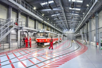Zvědavě otvírám dveře s nápisem „Hala DOČ a DOŠ“ (hala denní očisty a ošetření) a konečně jsem uvnitř cedníkové krásky. Denním světlem zalitý prostor se dvěma kolejemi je úctyhodný a první otázku vypálím na Tomáše Kadlece. Zajímá mě, jestli můžu ono dětské přirovnání úkonů před spaním zkrátit u tramvají na: zkontrolovat podvozek, utřít madla a alou na správnou kolej. „Víceméně ano. Tramvaj vyčistíme, aktuálně v corona době i vydezinfikujeme, což je prošplich dezinfekcí, plus část vozů jde na ozonizaci. Taky zkontrolujeme jejich technický stav a pošleme je spát.“ Hana Tomaštíková připojuje, že díky nové hale se už nemusí parkovat pomocí couvání a taky se tramvaje neštosují ve špičce až na Mendlovo náměstí.