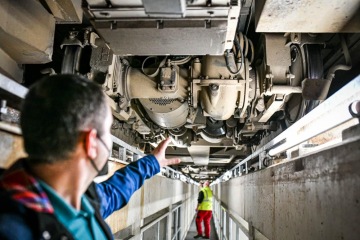 Tramvaj v depu popojede pár metrů a znovu zastaví. Nastává čas na technickou kontrolu, na kterou jsou vyměřené opět tři minuty. Tentokrát sleduju muže v zářivé ochranné vestě, který prochází v suterénu pod tramvají a s baterkou kontroluje důležité části podvozku jako jsou brzdy či motorová část. Nestačím se kochat současně unikátním pohledem na podvozek a ještě sledovat, co všechno se kontroluje. Společně s Hankou i Tomášem se shodneme, že toto je jediný moment, kdy se chcete ocitnout pod tramvají. Hezky bezpečně. I když mě upozorňují, že se za chvíli ozve hluk z kolejnicových brzd, stejně se leknu. Škubnu s sebou i vzápětí, když mi tramvaj zazvoní za zadkem. Těsná blízkost si holt žádá i intenzivnější vjemy.