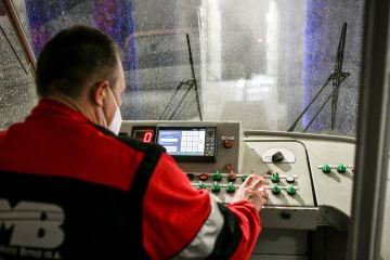 Odsýpá to tu svižně, o čemž se můžu na vlastní oči přesvědčit, neboť začíná večerní špička. Jakmile vůz vjede do haly, vrhnou se na něj pracovníci očisty. V patách jsem hbitému mladému muži s průmyslovým vysavačem, který kabinu vysmýčí, další žena sbírá hrubý odpad z podlážky a v zadní části stihnu dvojici žen, které utírají madla opěrátek. „Na očistu mají tři minuty, ale vzhledem k tomu, že je tam současně až šest pracovníků, celkem šalině věnují osmnáct minut. Jsou už sehraní a každý se soustředí na své úkony,“ líčí Tomáš. Všechno je tu rozplánované, a tak například každou středu se myjí madla, každý čtvrtek sloupky a tak dále. Každé vozidlo navíc jde jednou za 28 dní na zevrubný, zhruba čtyřhodinový úklid.