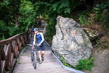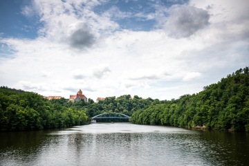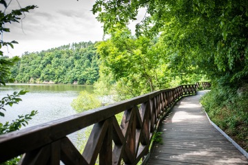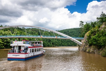 Cyklisticko-turistická stezka podél úbočí přehrady je otevřená už rok a je parádní. Doporučuju na ni vyrazit z lodní zastávky Pod Trnůvkou, kam doplujete parníkem. Vychutnáte si cyklostezku postavenou ve srázu a přejdete či přejedete lávku k hradu Veveří. Věděli jste, že tu třikrát pobýval i Winston Churchil a dokonce tu trávil svatební cestu? Kousek za hradem se můžete občerstvit v hostinci Stará prádelna a pokračujte po žluté značce přes Ríšovu studánku na přístaviště. A pokud jste si nic nedali na Prádelně, v cíli třeba bodne prasárnička v podobě langoše. Ale musí to být až ten druhý stánek, kde mají jen langoše. Pozná se spolehlivě podle delší fronty.