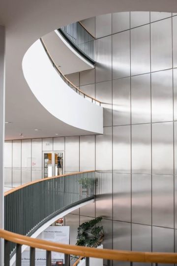 Už ve foyer v přízemí si zalomíte krk, když si chcete prohlédnout celý průhled. Ze sedmého – tedy nejvyššího patra – pak dohlédnete na Hády i Bílou horu. Nejzajímavější část jsem ovšem nalezla za dveřmi označenými nápisem Studovna rukopisů a starých tisků, kde dlí historické kousky staré staletí jako třeba Bible česká z roku 1506! Mladý pan knihovník zrovna připravoval vzácné kousky v rukavicích a mohla jsem mu koukat přes rameno.