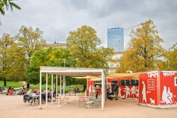 Protože teplý podzim nebude trvat věčně. Protože je krásné utonout ve žlutém stromoví (teda pokud ho přes dnešní mlhu spatříte). Protože Piknikbox má šmrnc (a není to jen tím, že se rdí). Protože má brownies v outdoorové verzi i gintonik. Protože je v parku s tejemným názvem Björnsonův sad. Protože je obsypaný fůrou sedátek i lehátek. Protože mě ti namalovaní bubáci baví, obzvlášť na toaletách. Zkrátka vyrazit do Piknikboxu můžete jen tak!