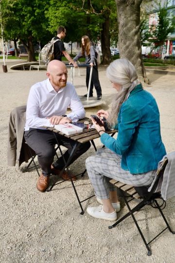 Dva dny před akcí mi ale zavolali, jestli můžu přijít dřív, že mi chtějí dát víc prostoru. Z pěti minut jsem dostala patnáct. Prý slyšel, že jsem o Londýnu napsala knížku a chtěl si víc popovídat. Nakonec se to stejně scrvrklo, ale jen proto, že Matt zrovna hrál s místní omladinou rugby. Náš rozhovor byl úplně jiný než jak je běžně dělávám (dlouhé, i když připravené tak stavící na improvizaci) a níže pod fotkami si ho můžete celý přehrát (sorry, in English only).