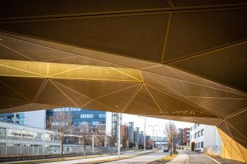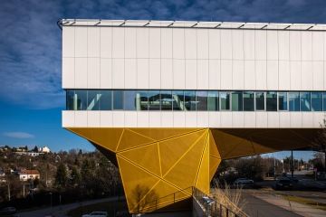 Pozornost na okraji Campusu budí ani ne dva roky fungující unikátní Simulační centrum SIMU, které je rozkročené nad silnicí se žlutým perforovaným podnožím. Ono ale není architektonicky uhrančivé jen zvenku.