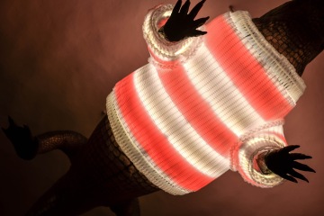 Drak v průchodu pod Starou radnicí nově dostal průhovaný svetr. A ne ledajaký. Ateliér Nahaku specializovaný na odpadový design ho uštrikoval z plastu, takže drakovi to seklo jako demižónu!