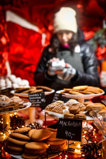 Bavil mě stánek Z Gálových sadů na Zelňáku se sušeným ovocem a horkým meruňkovým nektarem. Bavila mě čokoláda Ajala, třeba ta sypaná vanilkovými rohlíčky. Bavil mě Trnečka Smoked Fish a samosebou svařák z černorybízového vína nebo svařák s mandlovicí z Hustopečí.