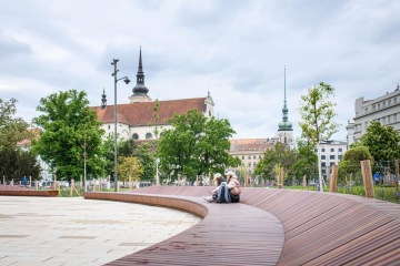 Betonová kašna ve tvaru pěticípé hvězdy, asfalt, stromy zarostlé houštím a několik cest prošlapaných „nelegálně“. Tím prostorem jsem jen spěchala a nic by mě nepřimělo si tu sednout, nedejbože dát si tu sraz. Bejvávalo! Po loňské osmiměsíční revitalizaci park na Moravském náměstí vstal z mrtvých, byl slavnostně otevřen a je radost v něm být!