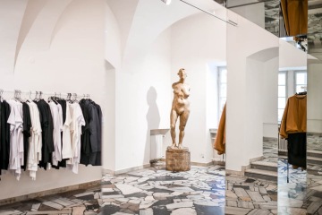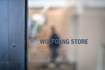 Z černého punku do bílých komnat s klenutými stropy, kde mezi stojany pózuje i umění vybrané aukčním domem. Prostor nejen pro vlastní značku, ale i ty hostující. Taky kavárna, bar a večer DJ v okně. V těsném sousedství staré radnice zkrátka rozprostřel křídla fashion store Wolfgang. I tentokrát se opakuje příběh, kdy zákazník touží po „pracovním oděvu“, do kterého je oháklý prodavač.