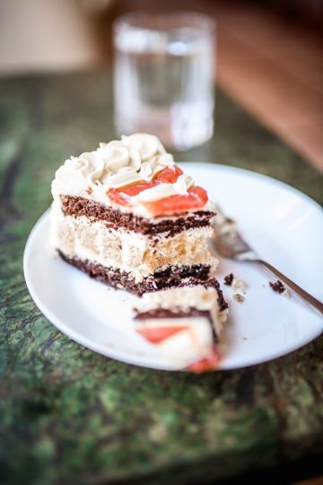 V rámci Open House Brno jsem do cukrárny nahlédla a mrkla do podzemní dílny, kde bývala pec na uhlí, kde jsou kouzelné cukrářské dřevěné stoly a nejrůznější formičky. Třeba ta na agarového čerta s griotkou na Mikuláše. Je to místo, kde mají brněnského draka buď z kokosu (zeleného) nebo z perníku. Vypadá sice jako had, ale když ten pravý drak vypadá vlastně jako krokodýl, tak je to v Brně v cajku. Poprvé v životě jsem si tu dala jejich specialitu, veletržní dort. S bylinným likérem Praděd, Božkovem a Vaječňákem. Stejně jako směs likérů se ve mně přitom mísila i směs roztodivných pocitů...
