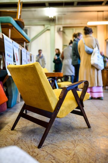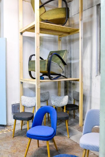 A group of young designers has settled in a faded warehouse. They breathe new life into old furniture. Be it hand woven seats for Ton chairs or upholstery for famour Halabala chair H269. They call themselves Krásná cimra (Beutiful room) with a spark of Brno dialect. It's wonderful to hang aroud and remember what we used to see in our childhood everywhere!