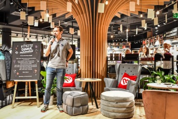 A place where you can hold a book, coffee or a pastry in a hand at the same time. The first subsidiary of a Slowak bookstore in the Czech Republik. Of course in Brno!