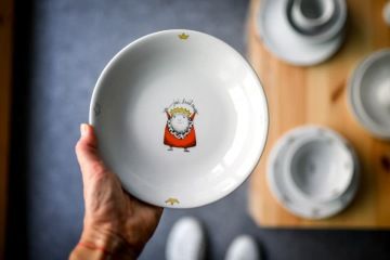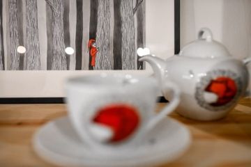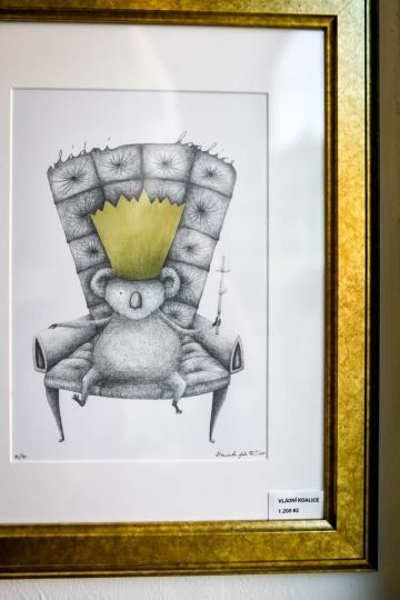 Listovala jsem knihou ilustrovaných básní, která vznikla jako bakalářská práce majitelky. Když jsem držela talíř, kde je na dně král či královna, culila jsem se. Jo, tak ten bych rozhodně vylízala do dna! Při pohledu na obraz s názvem „vládní koalice“ jsem se už smála nahlas. Motiv Karkulky v lese mě uhranul, až jsem fňukla, že už jsem moc velká na to, abych se muchlala do povlečení, kde se míhají stromy, vlk i babička.