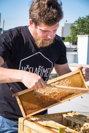 Při řeči si občas nakroutí knír a ponožky má s výrazným včelím motivem. Pro jistotu každou jinou. Jakmile však dojde na včely, tenhle hipsterský mladý muž mluví s pokorou. Včely jsou jeho vášní a napozorováno a nastudováno toho o nich má spoustu. Když se z Beskyd přestěhoval do Brna kvůli studiu na konstruktéra vysokonapěťových přístrojů na VUT, včelařina, které se v Beskydech věnoval, mu chyběla. Proto s ní začal i tady. Nejprve na zahradě a pak na dvou střechách, které má v plánu rozšiřovat.